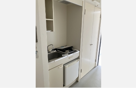 - ワンルーム(エアコン、冷蔵庫、ミニキッチン、ユニットバス、クローゼット、オートロック完備。洗濯機は共同洗濯室にて3台設置。)