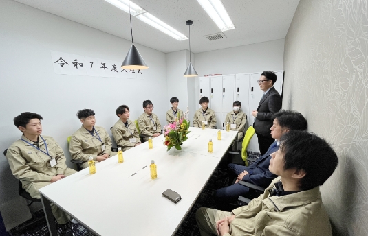 4月1日博多事務所会議室にて入社式を執り行っています。